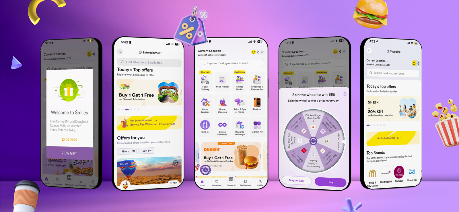Smiles is e&’s loyalty program, a super app connecting users across the UAE to thousands of lifestyle, food, travel, and entertainment offers.